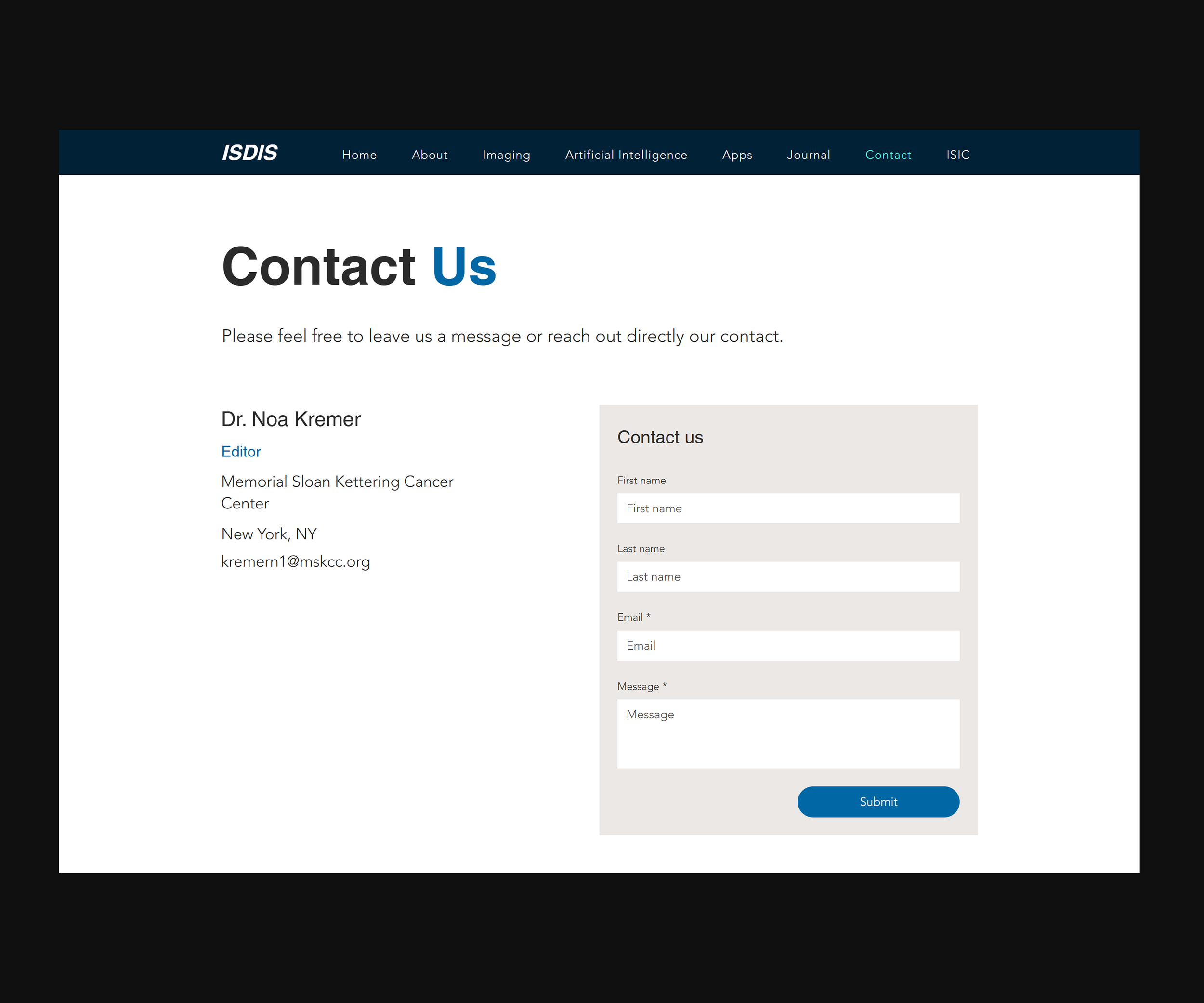 International Society For Digital imaging of the skin Website design and front-end development for Memorial Sloan Kettering’s ISDIS research group.
