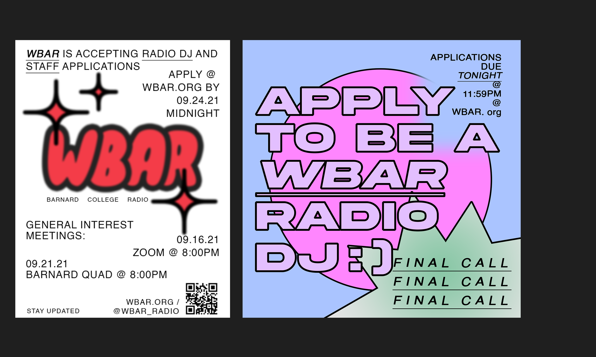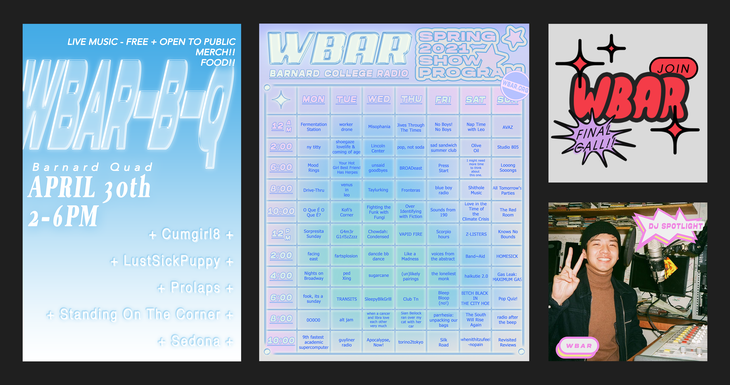 Barnard College radio (WBAR) Social Media and Promotional Graphics made for Barnard College’s Freeform Radio Station, WBAR.